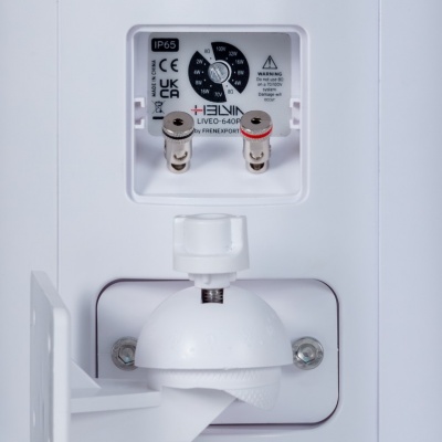 Inside, the plastic woofer, Mylar tweeter and protected rear connectors ensure complete waterproofing (IP65 rating) without compromising sound quality, which remains balanced and dynamic thanks to the careful choice of materials and precise acoustic design.
