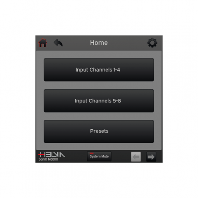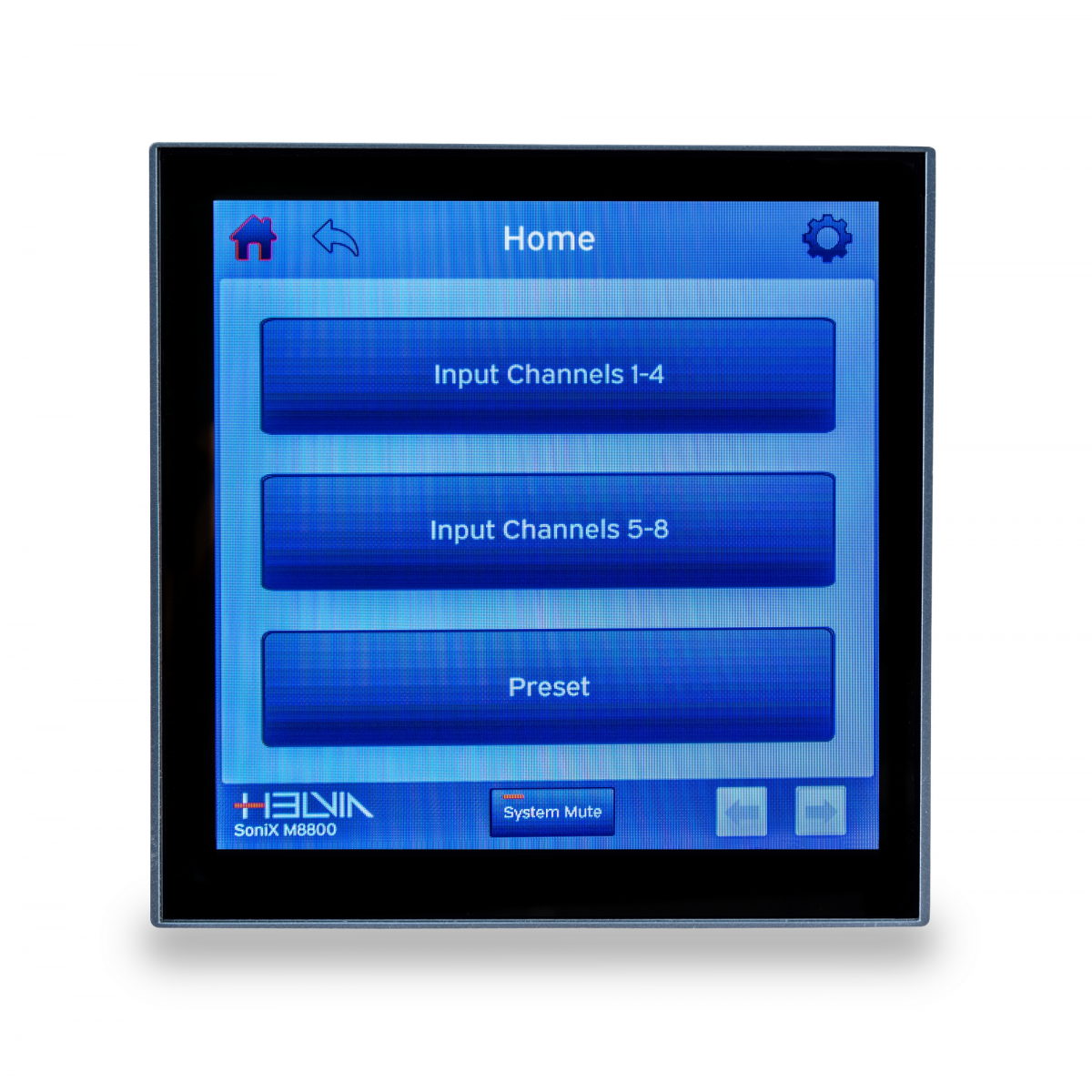 You can instantly control the volume and mute of the 8 inputs, mute the entire system, and recall 8 of the 32 presets available on the SoniX M8800. Each preset can contain all the settings for the 8 inputs and output zones, as well as every control parameter for the numerous processing functions.