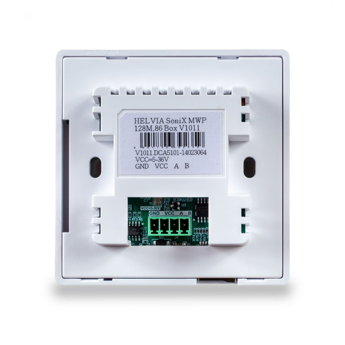 The SoniX MWP is an in-wall control with a 4” color touch screen designed to control input volumes, mutes, and 8 preset recall of the SoniX M8800 matrix. It comes with an external power adapter, all adapter cables to the standard RJ-45 serial connection, and 80x80mm recessed wall box.