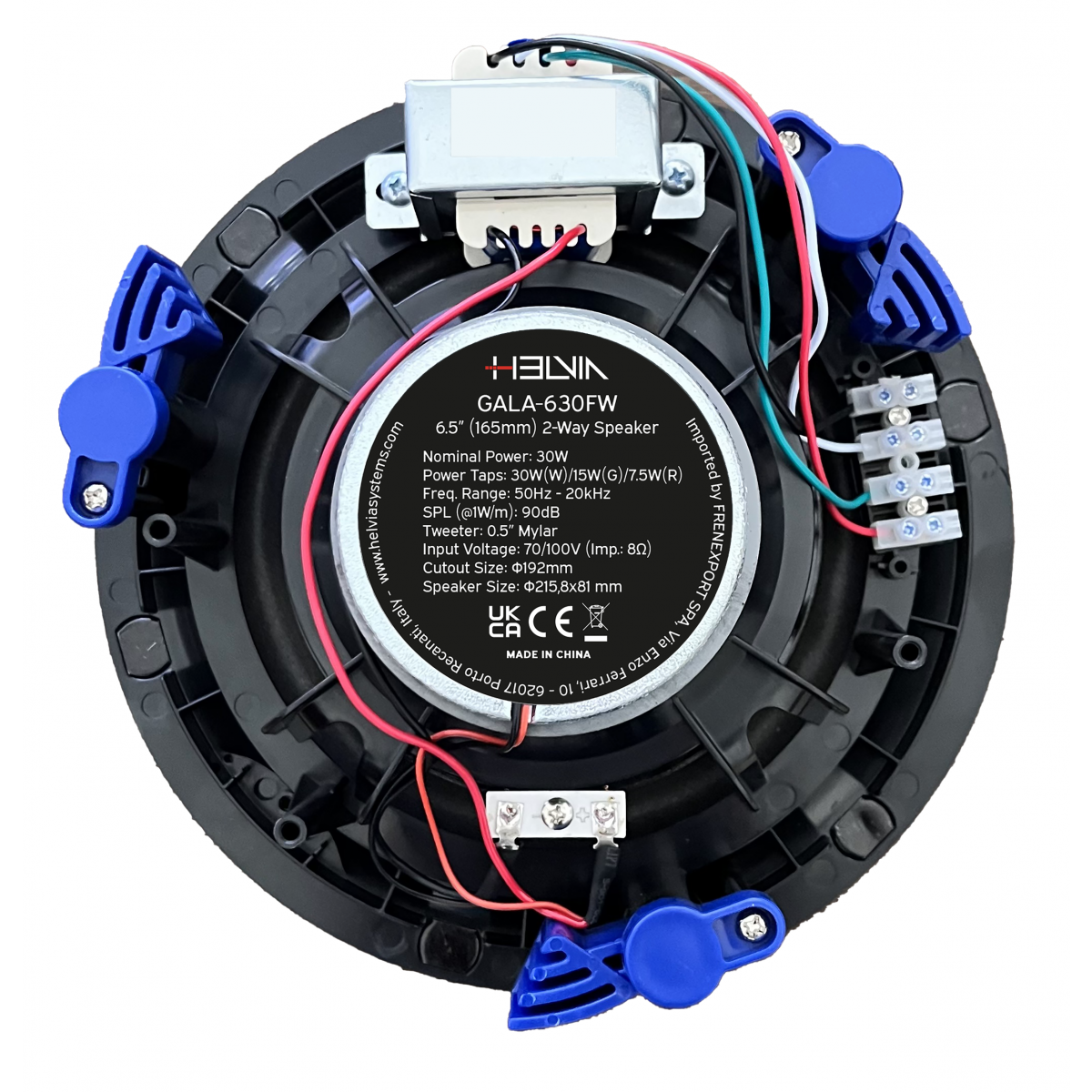 Il corpo degli altoparlanti GALA FW è realizzato in ABS di alta qualità. Sono inoltre dotati di tweeter a cupola in Mylar da 0,5”, woofer rinforzati in polipropilene e griglia metallica senza cornice con magneti, che conferiscono a questi altoparlanti un aspetto elegante e raffinato.