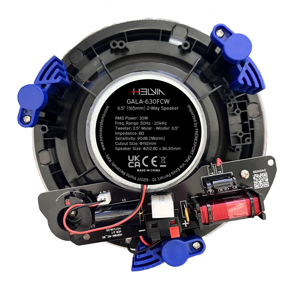 Il struttura degli altoparlanti GALA FCW è realizzata in ABS di alta qualità. Sono inoltre dotati di tweeter a cupola in Mylar da 0,5", woofer rinforzati in polipropilene e griglia metallica senza cornice con magneti, che conferiscono a questi altoparlanti un aspetto elegante e raffinato.