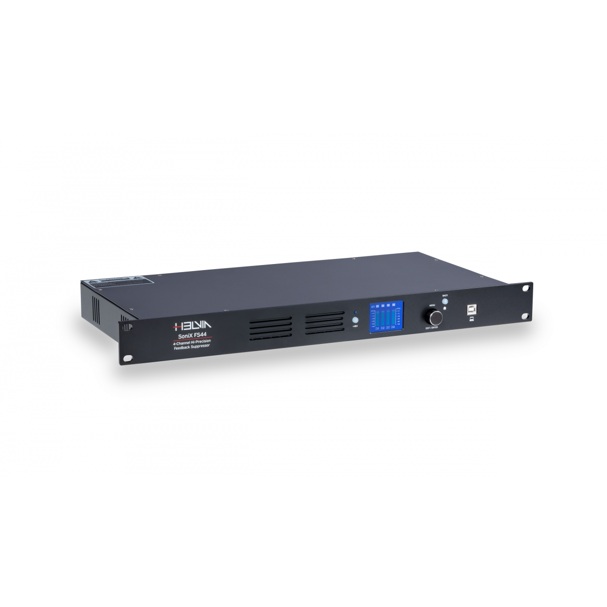 SoniX FS44 è un soppressore di feedback con 4 ingressi e 4 uscite progettato per tutte quelle applicazioni conference e installazioni fisse in cui sono presenti molti microfoni e molti problemi di Larsen. Questo processore, grazie alla sua enorme potenza di elaborazione, consente risultati sorprendenti, anche per utenti senza una conoscenza approfondita delle tecniche di ripresa microfonica.